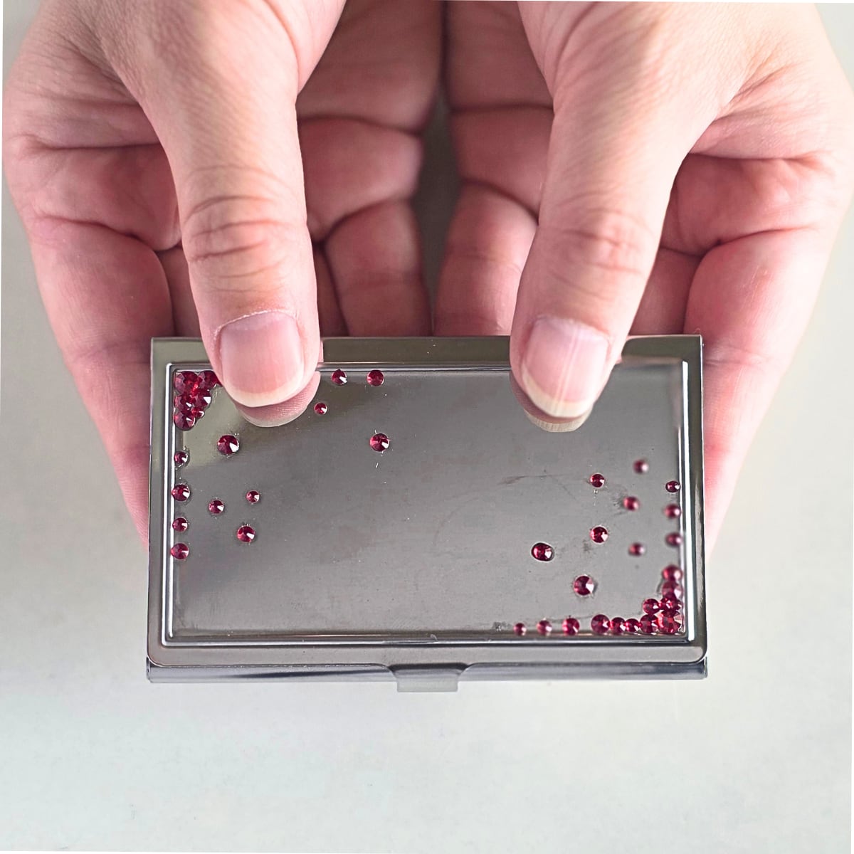 この商品はスワロフスキークリスタルでデコレーションした名刺入れです。