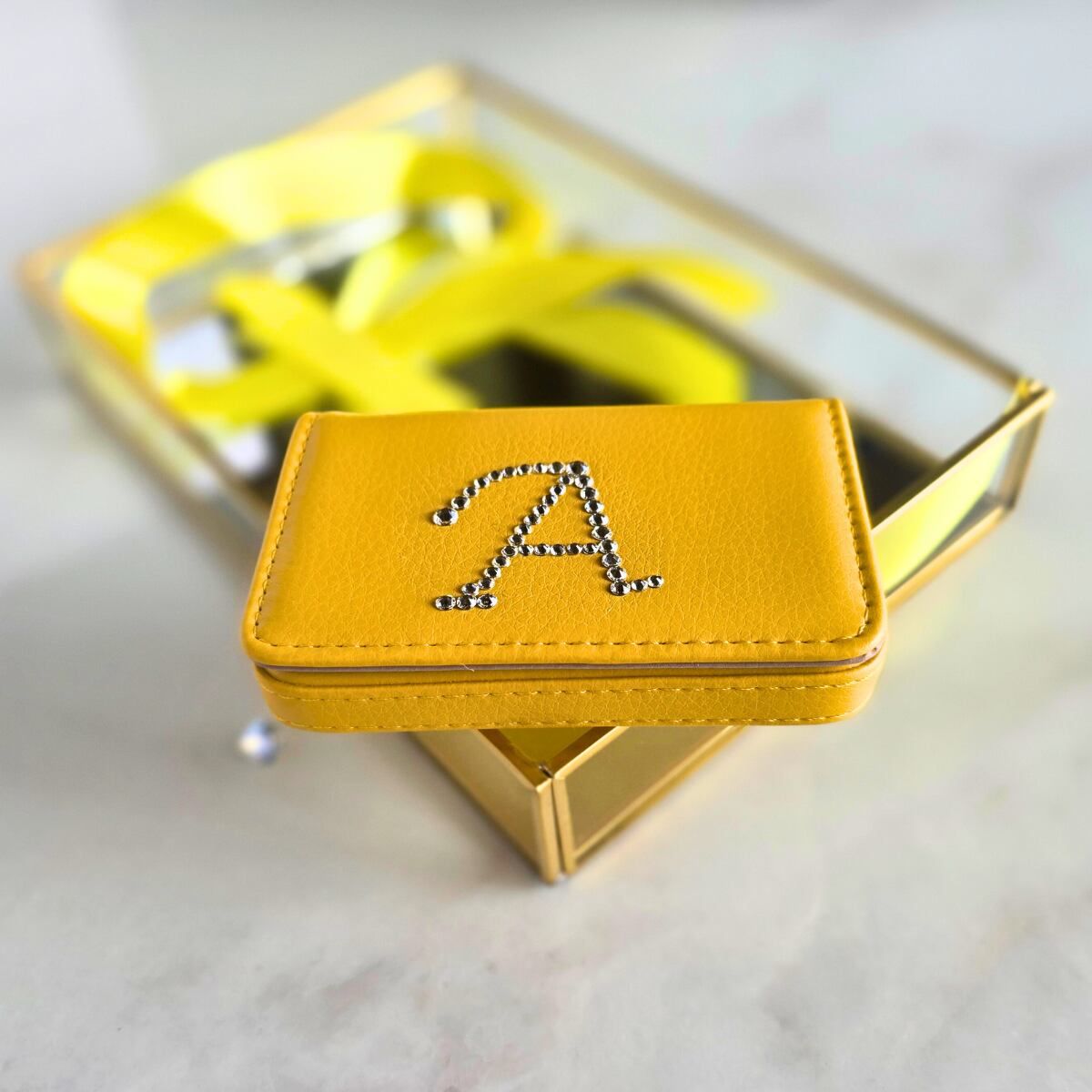 名刺入れ キラキラ デコ スワロフスキー デコレーション スワロフスキー名刺入れ PUレザー イエロー 就職 転職 女性 レディース 50代 40代 30代 20代 キャバ嬢 ギャル | Shining Brightly