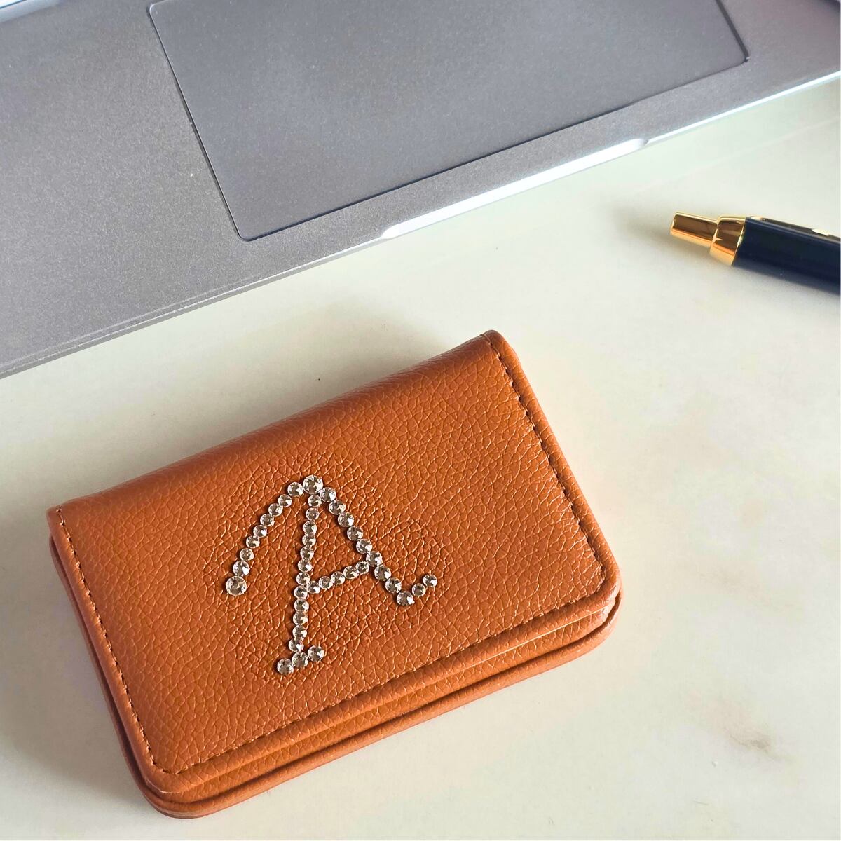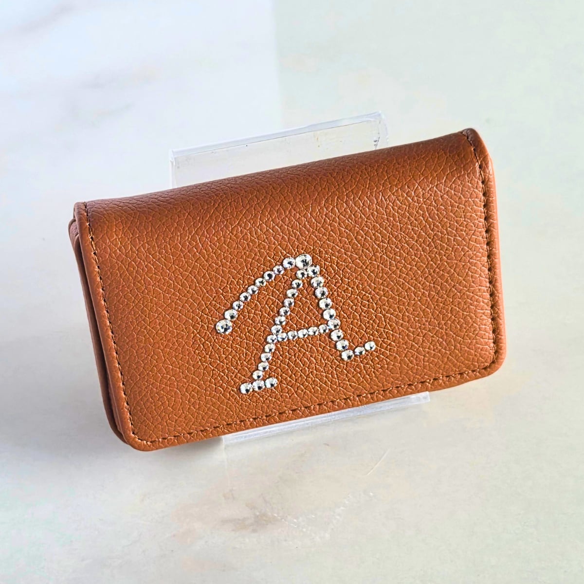 名刺入れ キラキラ デコ スワロフスキー デコレーション スワロフスキー名刺入れ PUレザー ブラウン 就職 転職 女性 レディース 50代 40代 30代 20代 キャバ嬢 ギャル | Shining Brightly